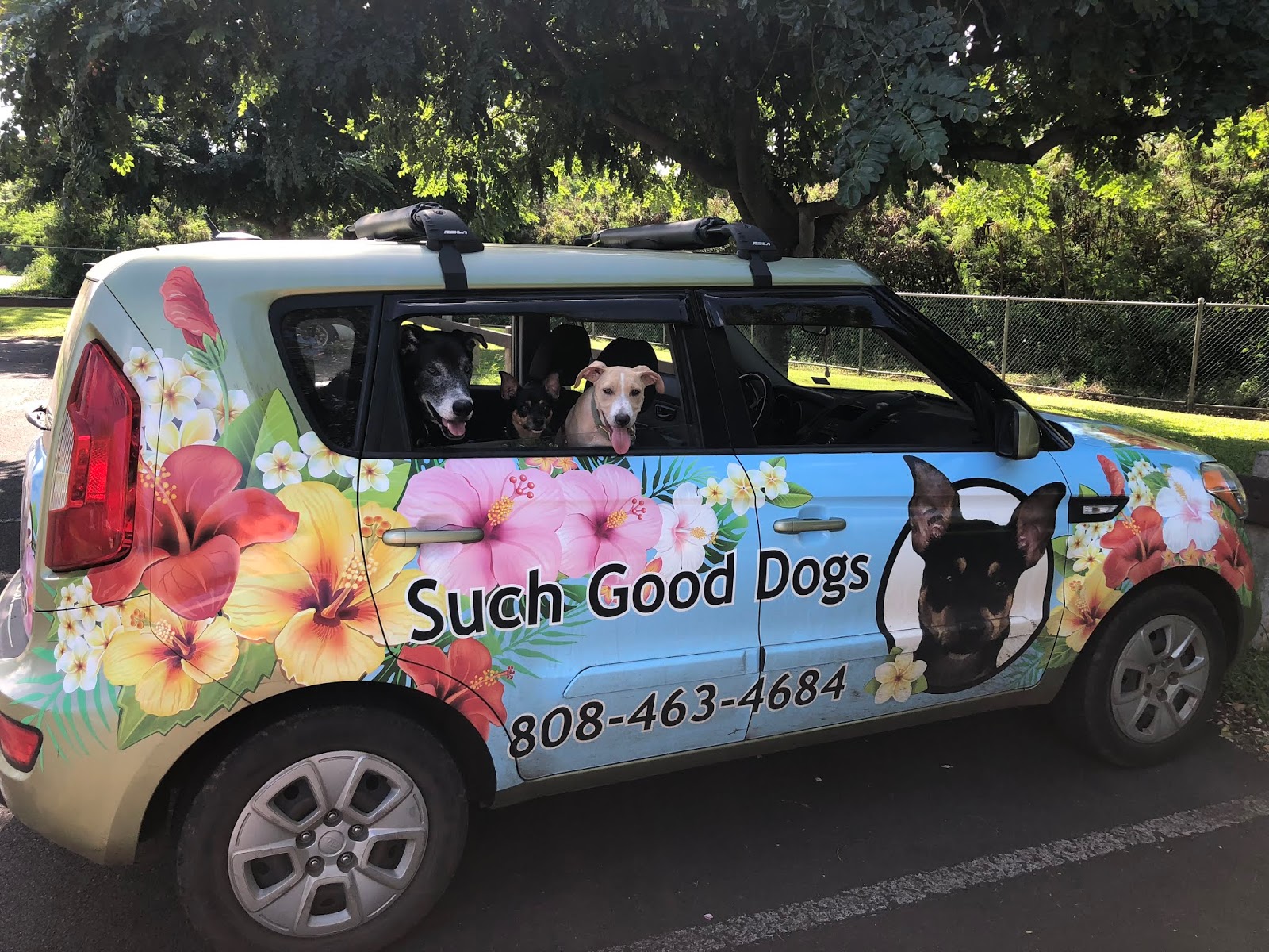 Caravaggio, Devo, & Ahsoka in the Such Good Dogs Car.