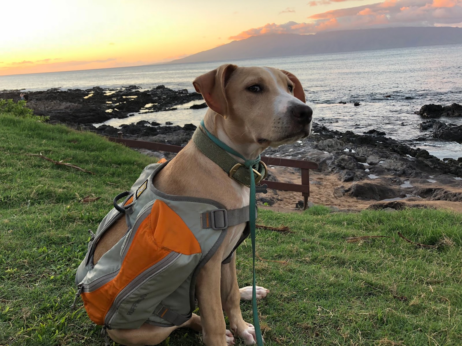 Ahsoka sporting her Ruffwear dog backpack (that’s still a little too big for her).