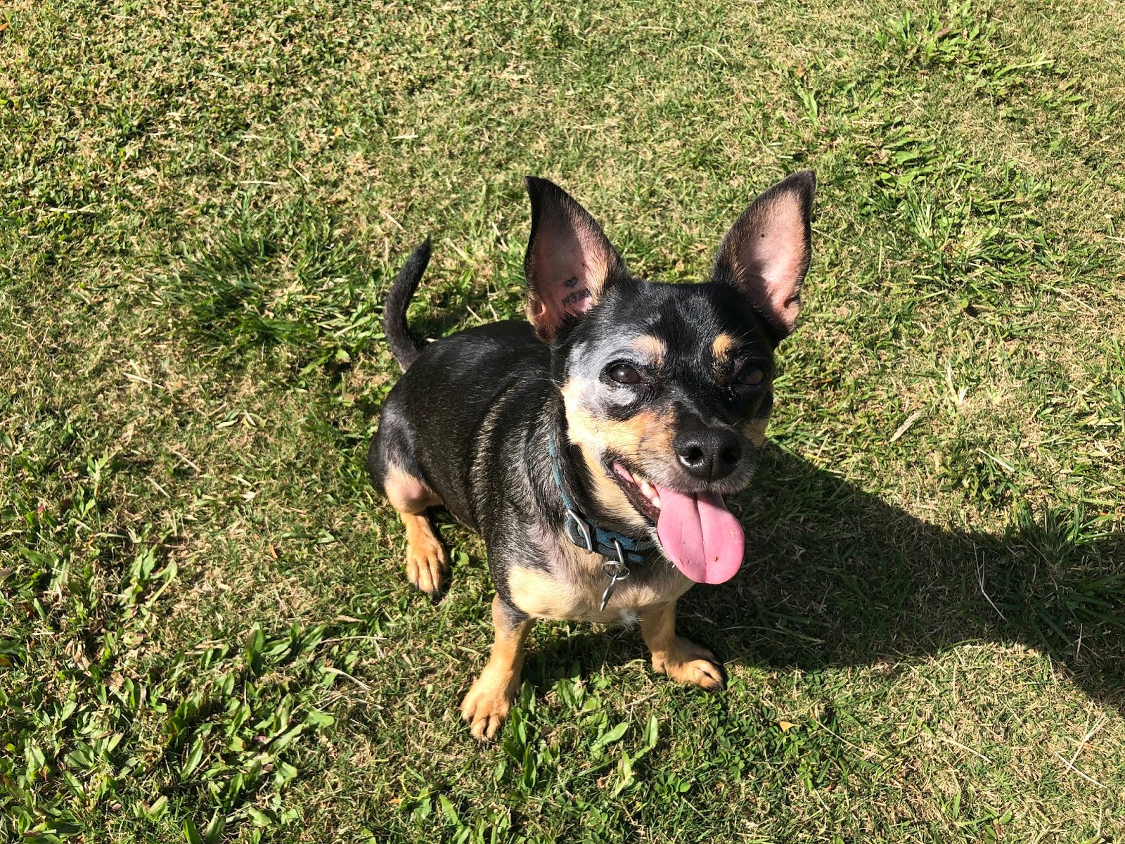 Devo decided to roll in a freshly painted line in the grass.  Good job buddy.