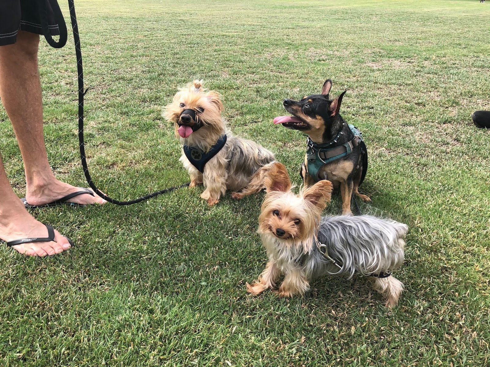 Some pictures from our training session today with Manu & Mo. We worked on some socialization with other dogs and with each other. These two housemates have been fighting with each other since their other dog pack member passed away. The family is working on rules, boundaries, and socialization. Also pictured are several of my dogs and our doggie helpers. Thank you to everyone who was able to help out today.