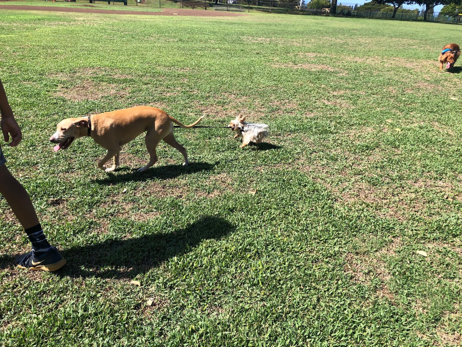 Both dogs are making progress. Remember to have lots of patience when doing socialization training.