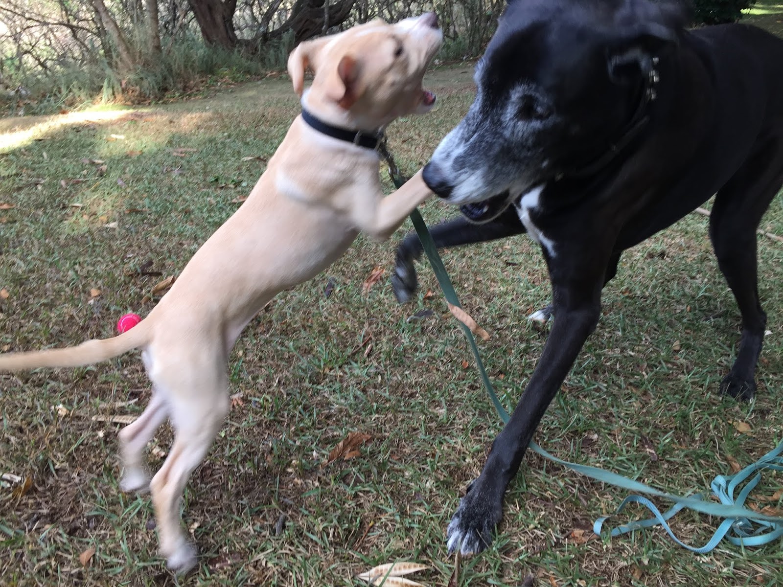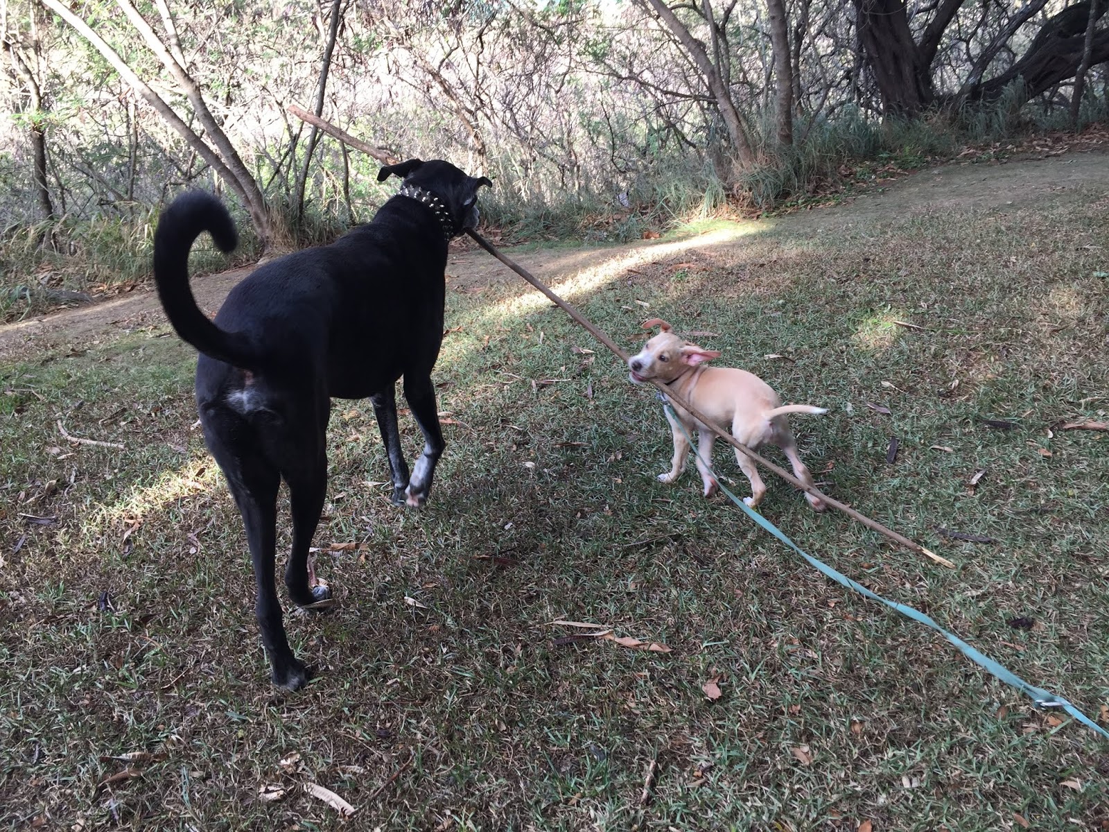 Just dragging a cute puppy around.